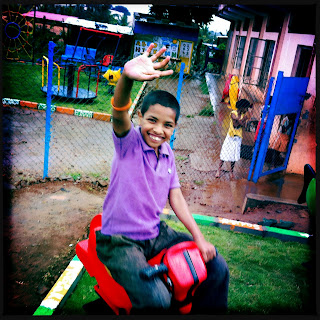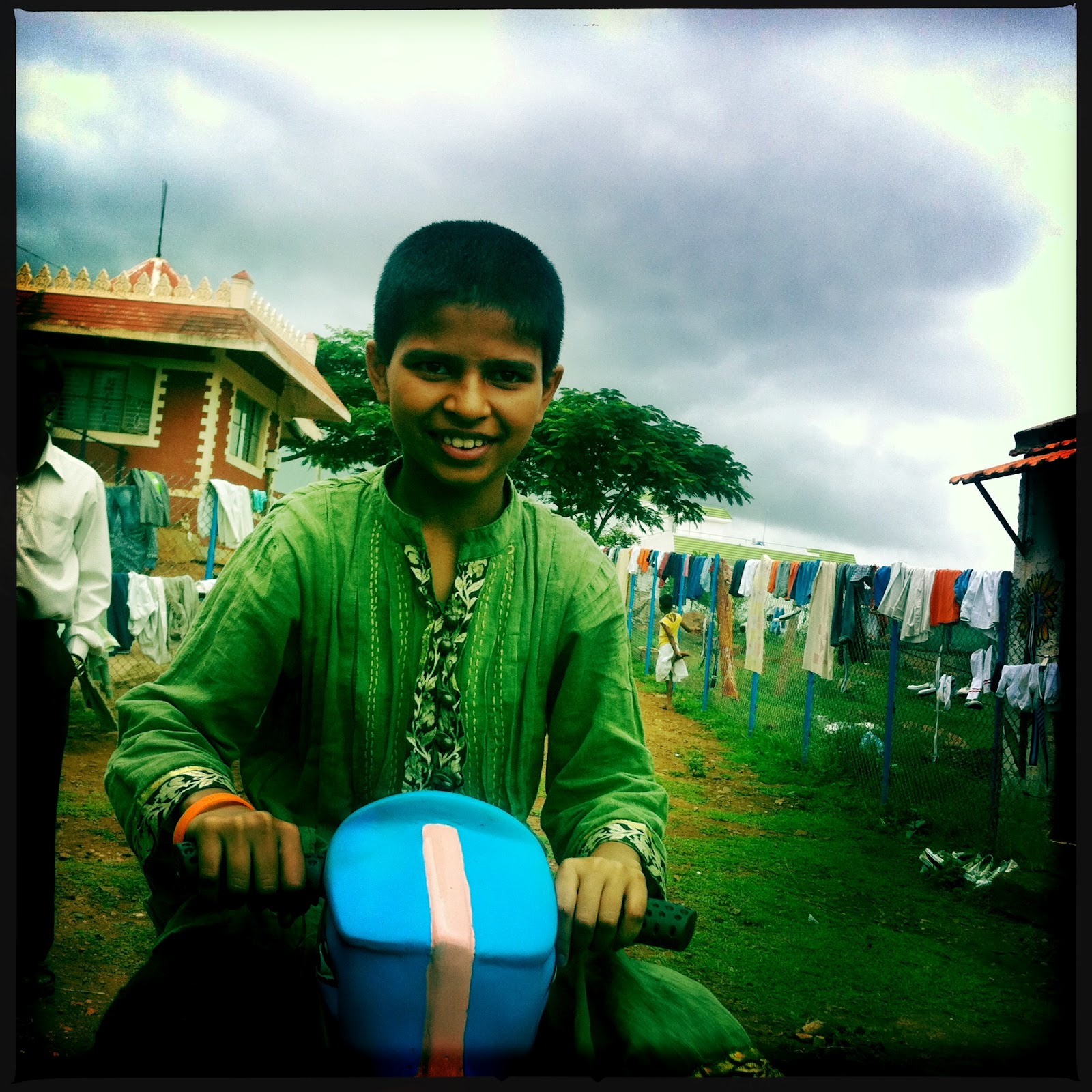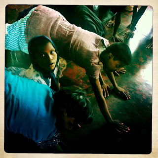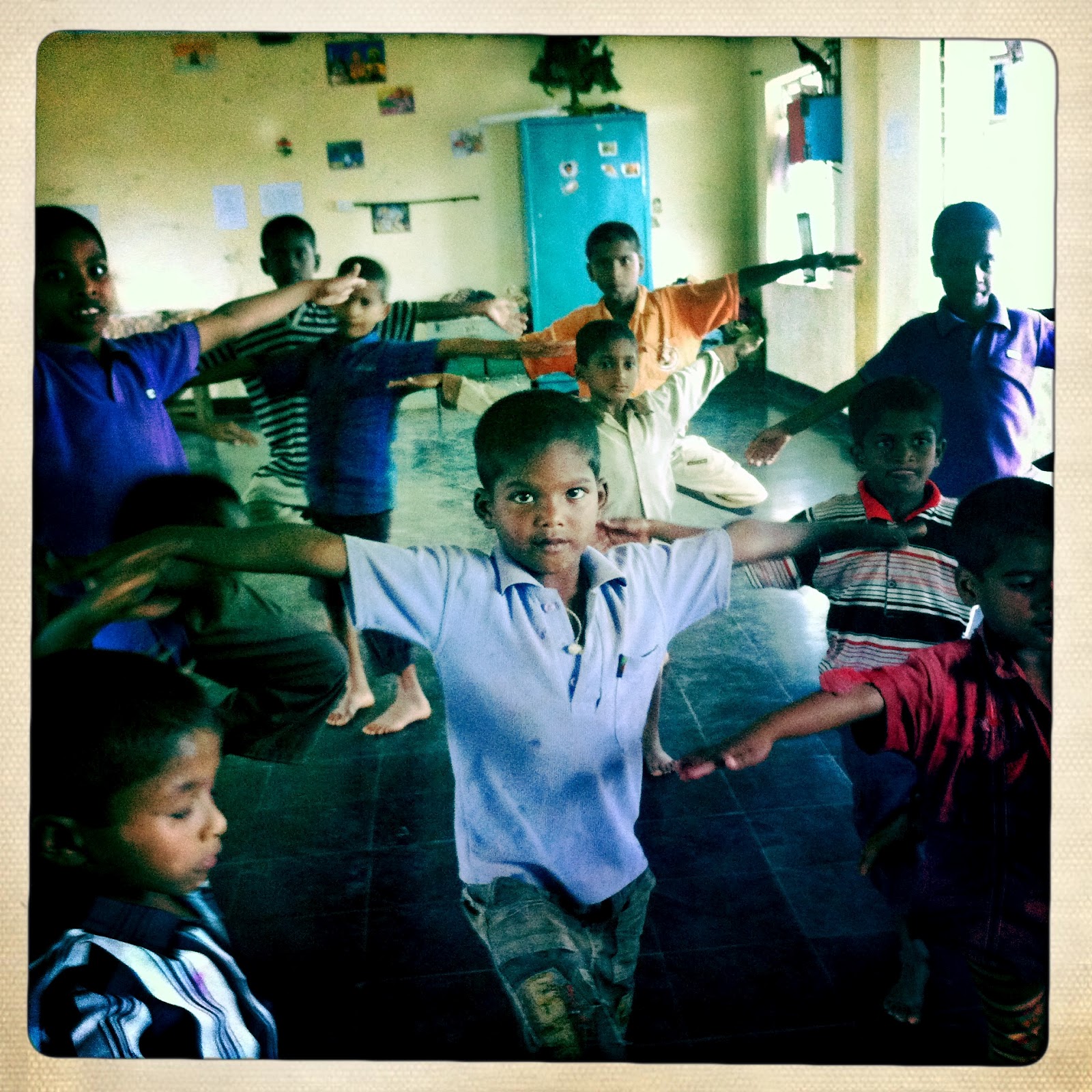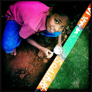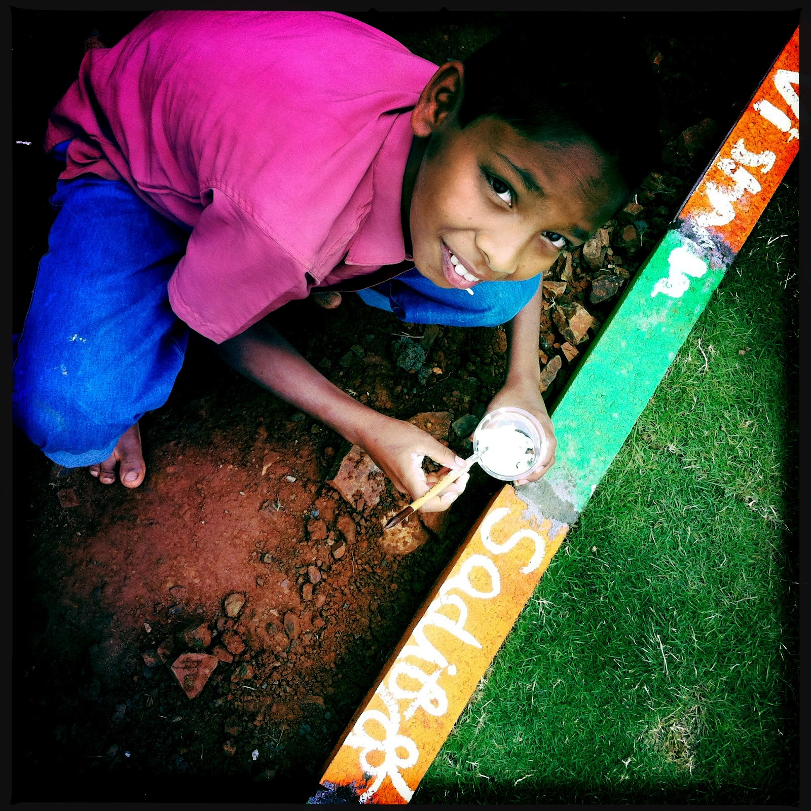 Last sunday the kids at KM played on their new playgrounds for the first time. The boys played in the pouring rain, which had absolutely zero effect on their fun! We had a surreal moment watching the children playing, realizing the project had finally come to fruition. Our playground opening party was complete with yoga, photography, samosas, and of course playing on the new playground! Before going on the playground each child received their own StarSeeds Shanti orange bracelet, they have been a real hit!